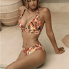 Floral High-Waist Bikini Set with Double Straps – Orange Blossom