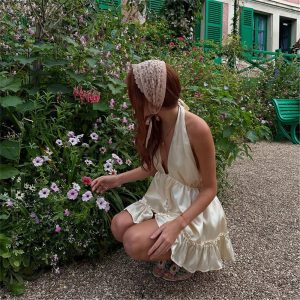 Французское романтичное атласное платье на шее облегающего кроя