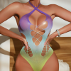 Ombre Illusion Mesh Bodysuit – Purple, Blue & Green Gradient
